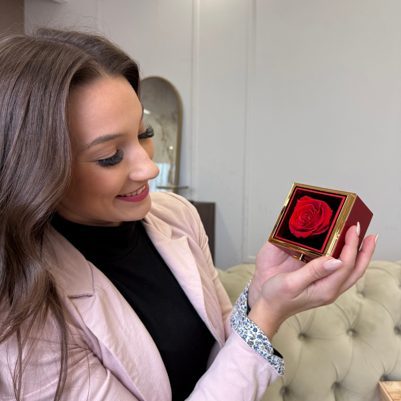- Uchovávajte vo vitríne: večnú ružu môžete uložiť aj do vitríny (s vekom), aby bola chránená pred prachom a inými vplyvmi prostredia.
