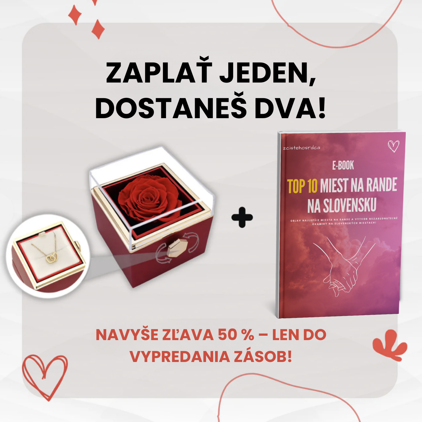Určite to bude skvelý darček! Podľa spätnej väzby viac ako 2300 spokojných zákazníkov majú darčeky od zcistehosrdca.com vždy úspech. Špeciálne konzervované ruže zostanú krásne a voňavé navždy, takže vaši blízki si tento výnimočný okamih budú vždy pamätať. Náhrdelník robí darček ešte jedinečnejším. Dievčatá milujú šperky a tiež ruže, takže si môžete byť istí, že tento darček urobí dojem na každého. Bude radosť obdarovať niekoho takýmto výnimočným a nezabudnuteľným darčekom!
